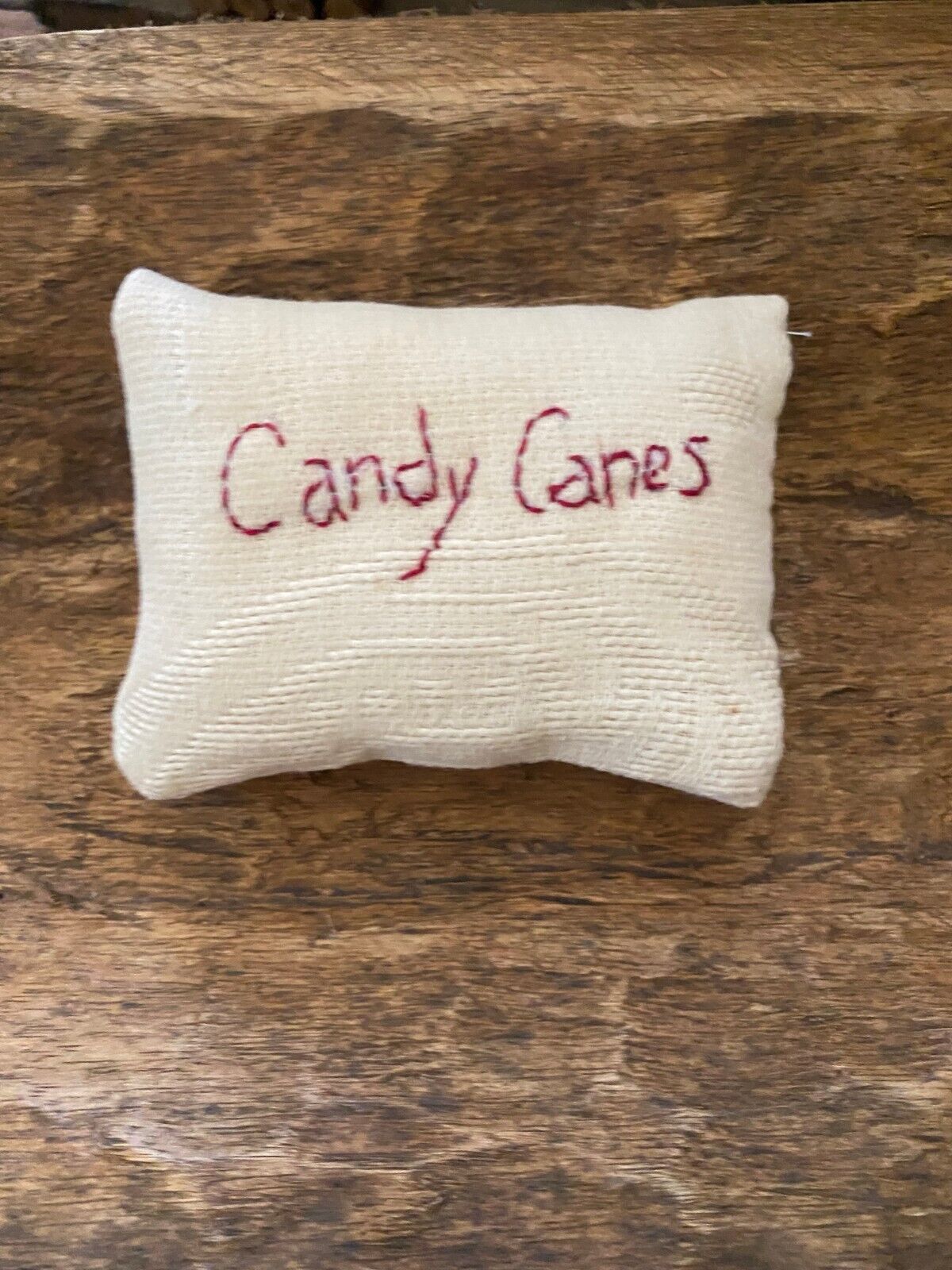 Title (ebay affiliate link): Primitive Stitchery Candy Canes Aged Cotton Ornie Christmas