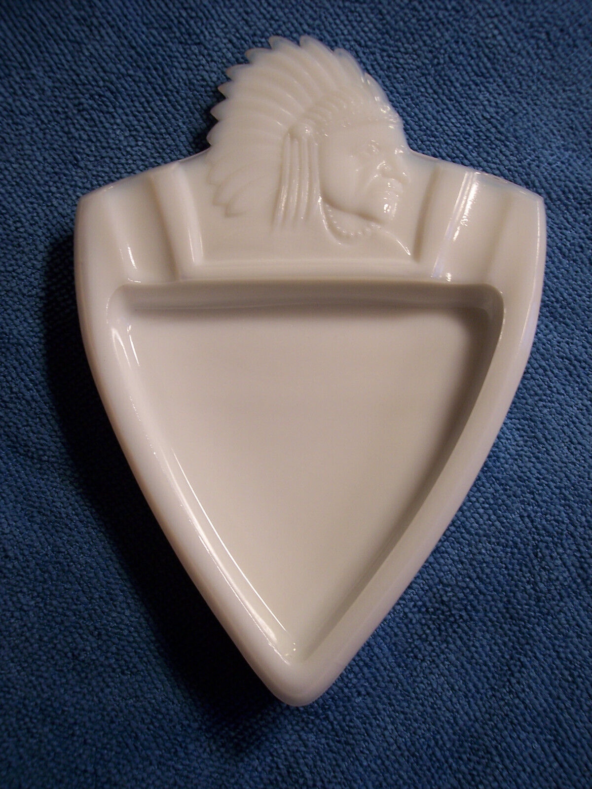 VINTAGE YOUGHIOGHENY MILK GLASS AMERICAN INDIAN ASHTRAY ARROWHEAD SHAPE CHIEF