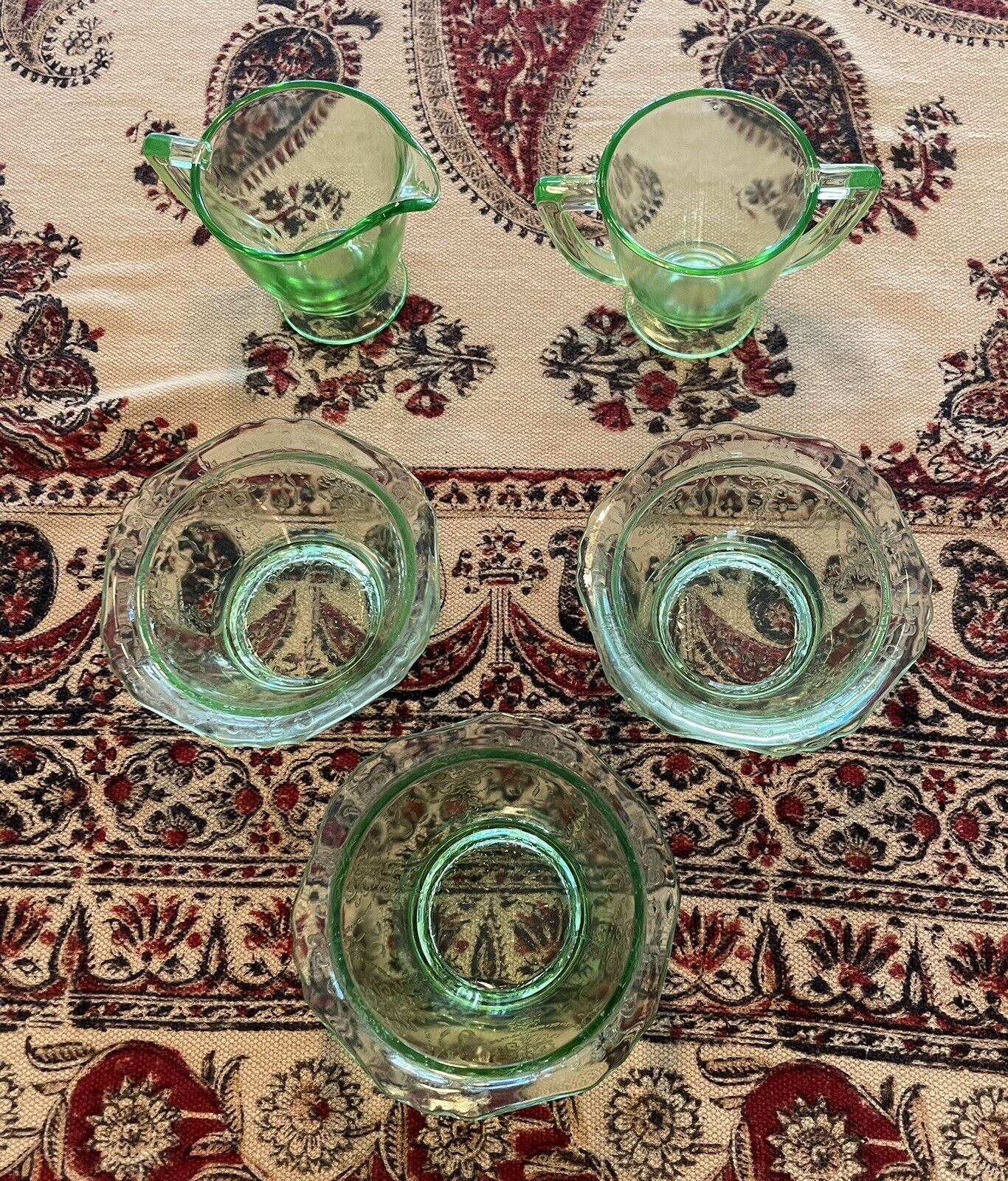 Title (ebay affiliate link): FOOTED SHERBET 3 Vintage DEPRESSION glass GREEN BOWKNOT pattern EXC