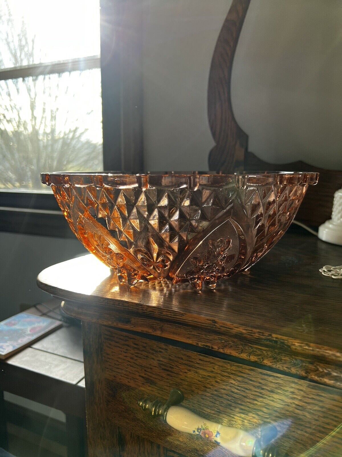 Beautiful Vintage Pink Depression Glass Apple Blossom Pattern Serving Bowl