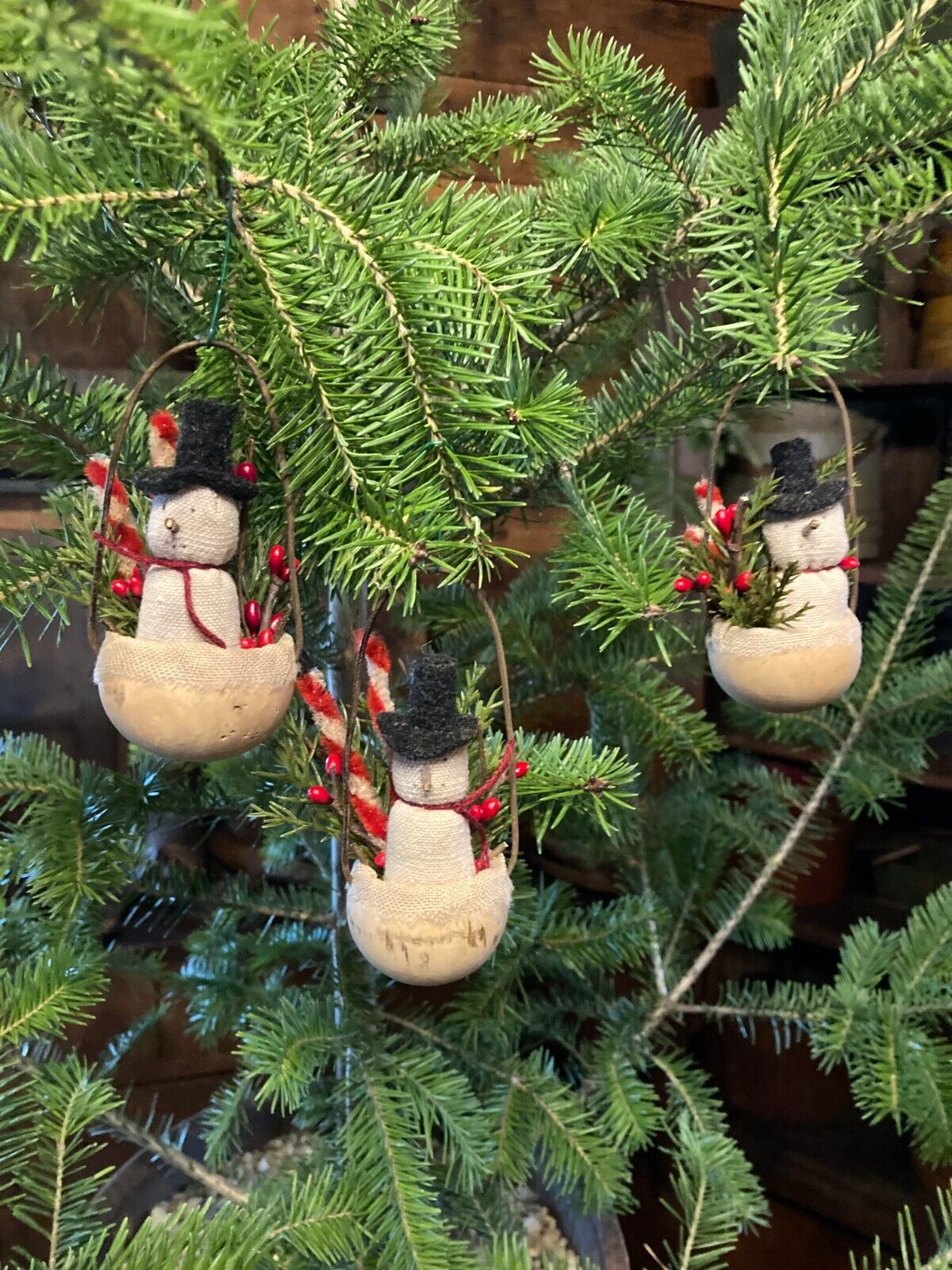 Primitive Little Christmas Snowmen Gourd Ornaments
