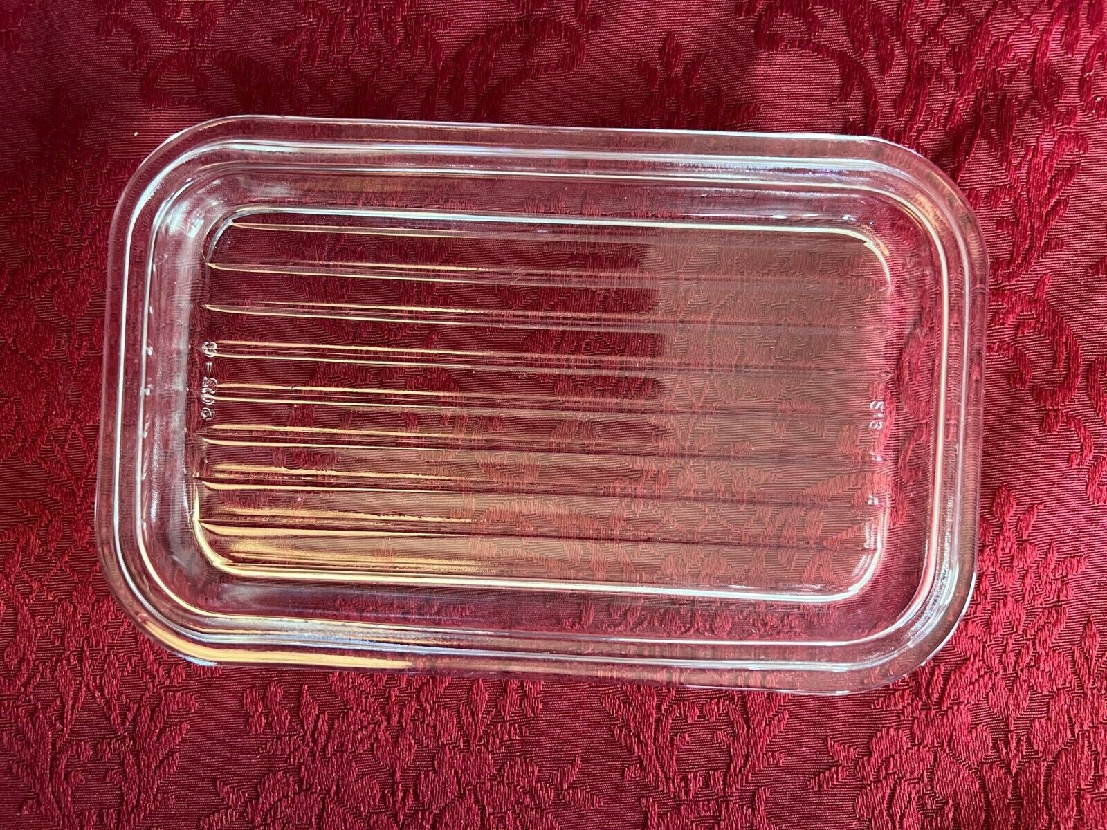 Title (ebay affiliate link): Pyrex 502C Refrigerator Dish Clear Glass Ribbed Lid 4 x 6.75