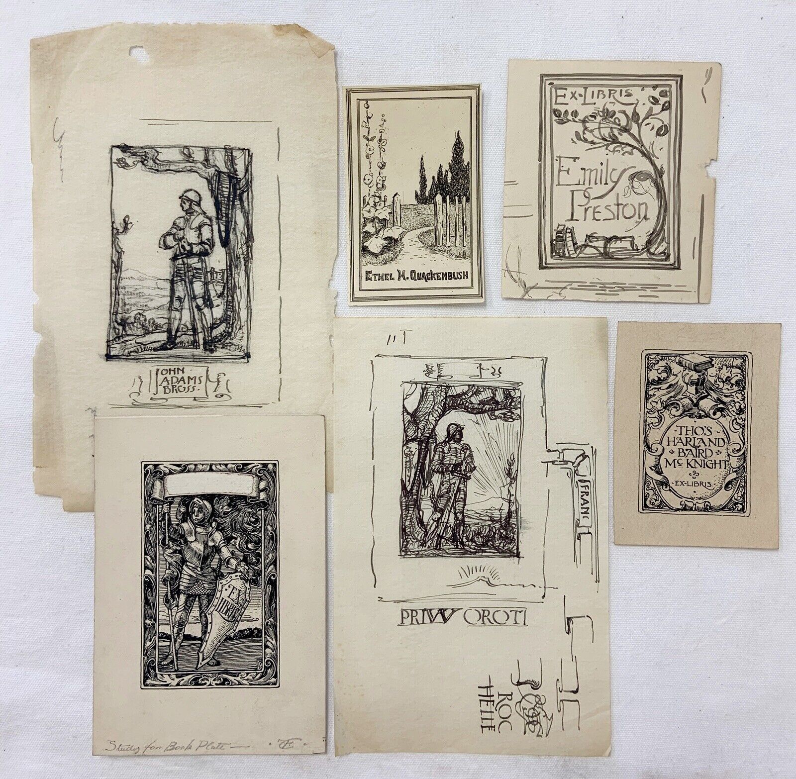 Antique Frank Tolles Chamberlin Bookplate Studies ORIGINAL Drawings Sketches