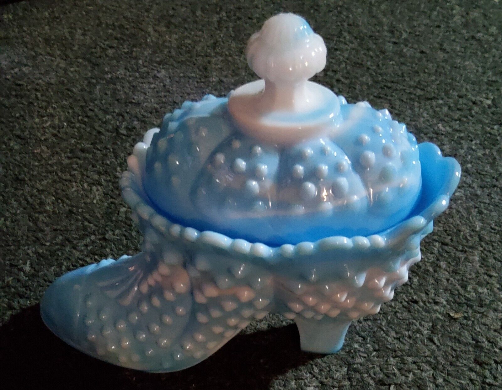 Title (ebay affiliate link): PreLogo Vintage Fenton Large Pastel Blue Marble Hobnail Covered Shoe 6.5 Inches