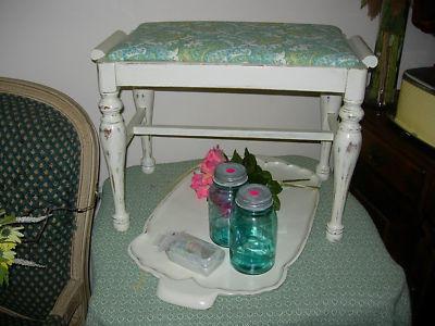 Title (ebay affiliate link): Upholstered Shabby Antique Chic Vanity Bench Stool NR!