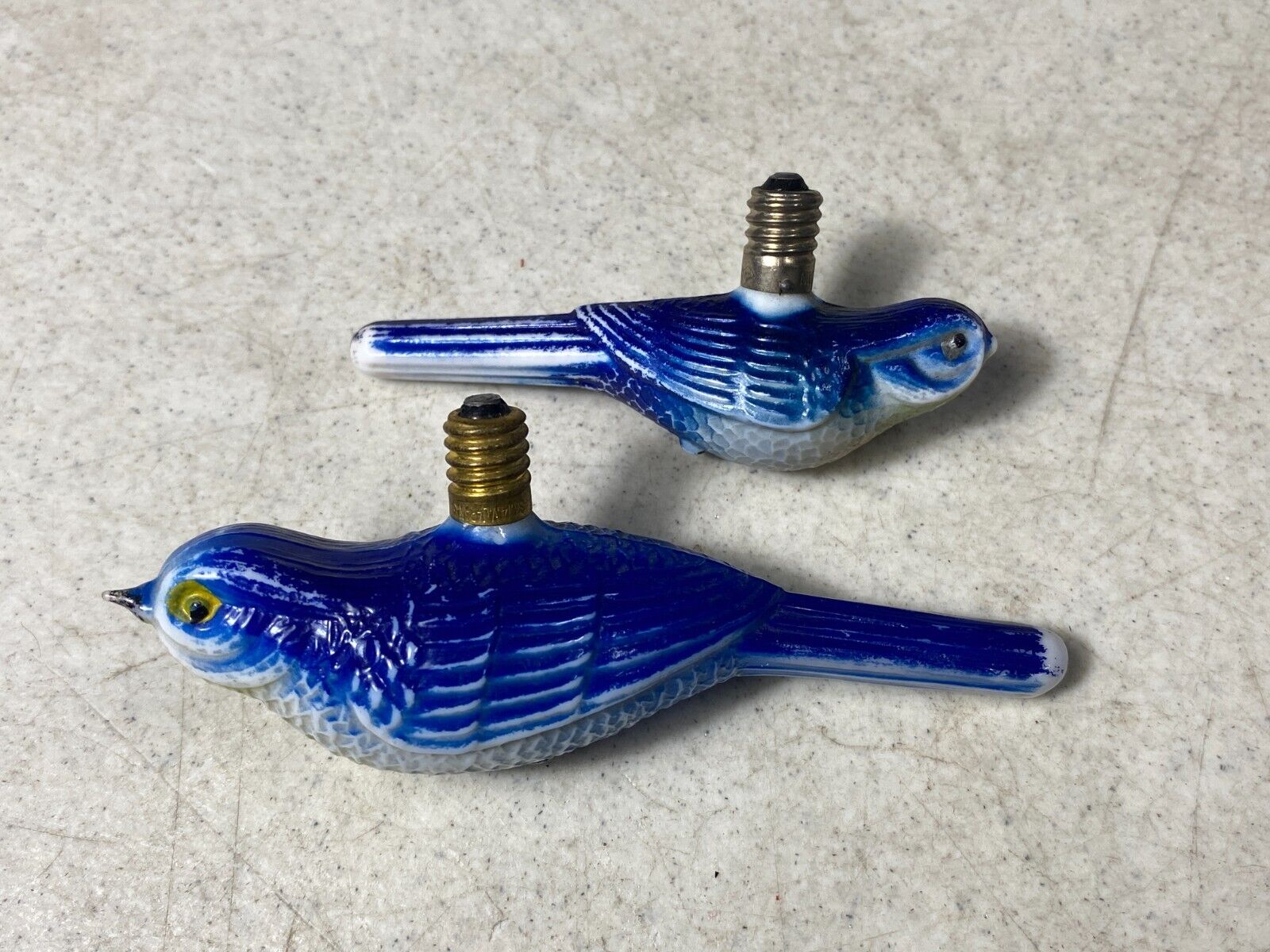 Scarce Vintage Hand Painted Christmas Figural Blue Bird Bulbs Milk Glass Pair