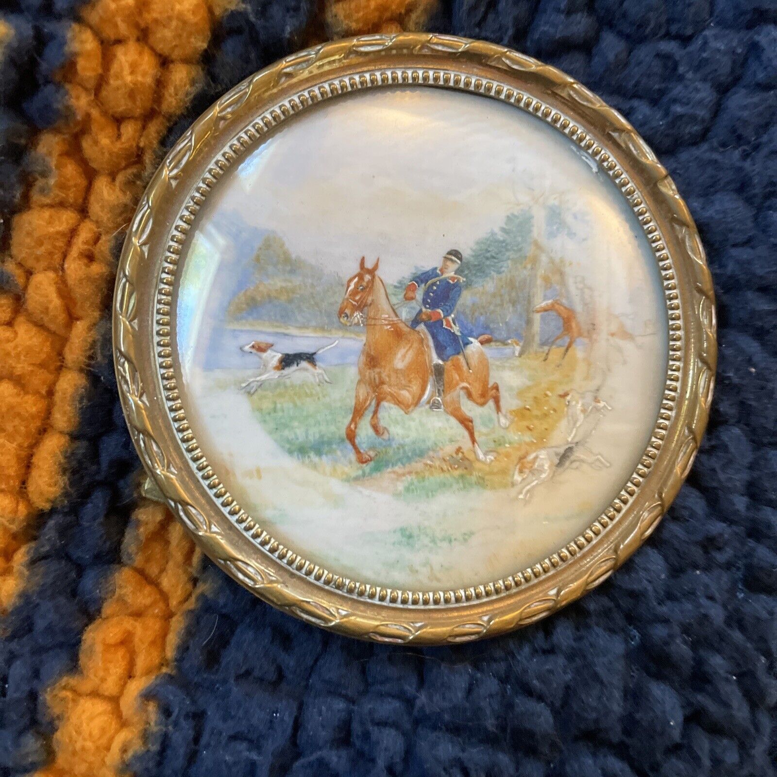 Title (ebay affiliate link): Antique Miniature Portrait Painting Military Horseback Dogs Hunt Scene