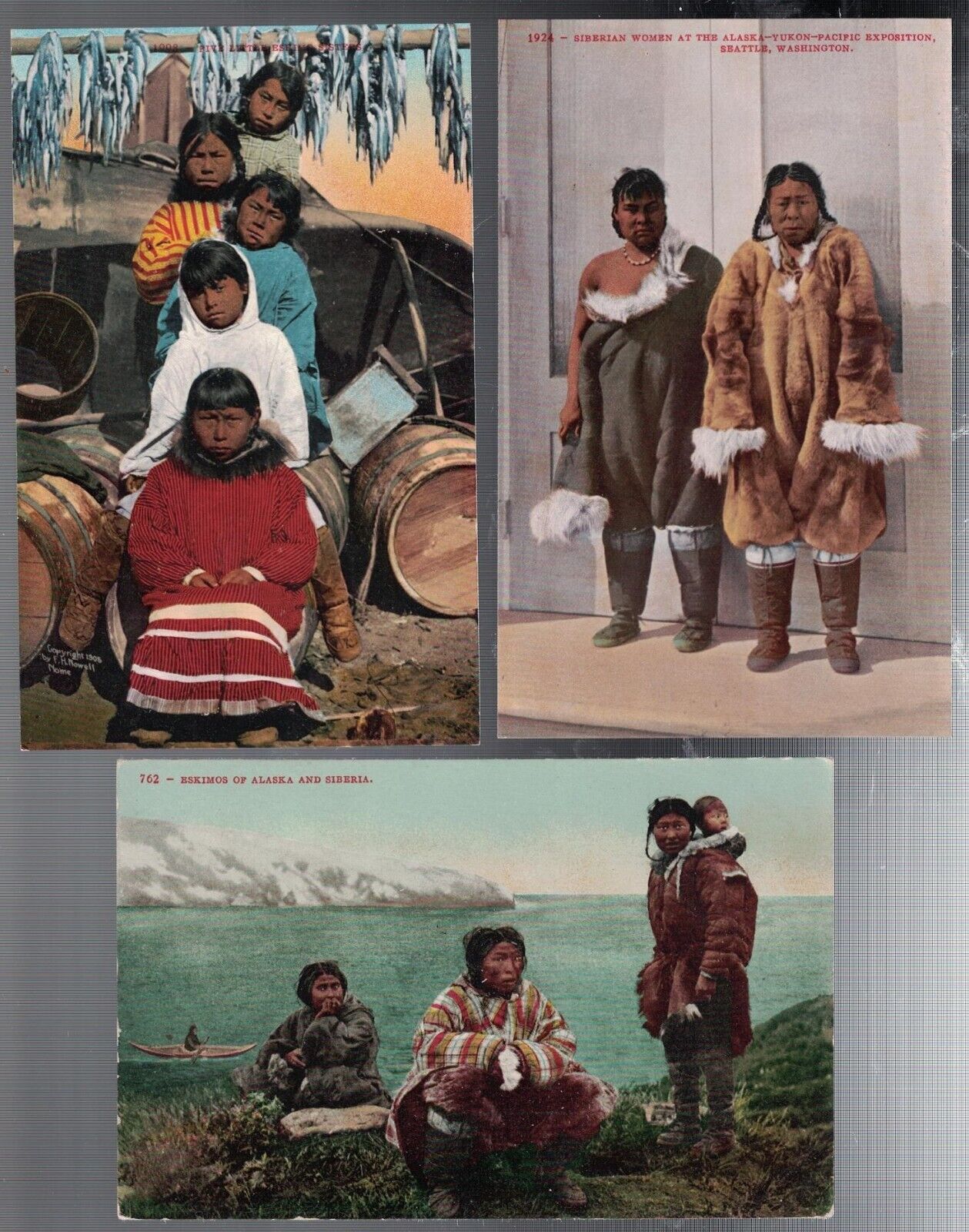 3 ANTIQUE 19071910 NATIVE ALASKA ESKIMO FOLKS POSTCARD