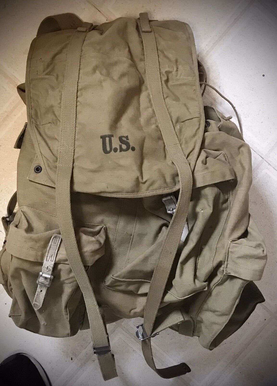 Title (ebay affiliate link): ANTIQUE OLD WW2 1942 US Army Military Field Backpack Rucksack Canvas Bag Frame