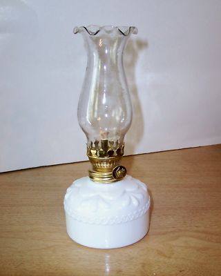 Minature Kerosene Oil Lamp -WHITE MILK GLASS-