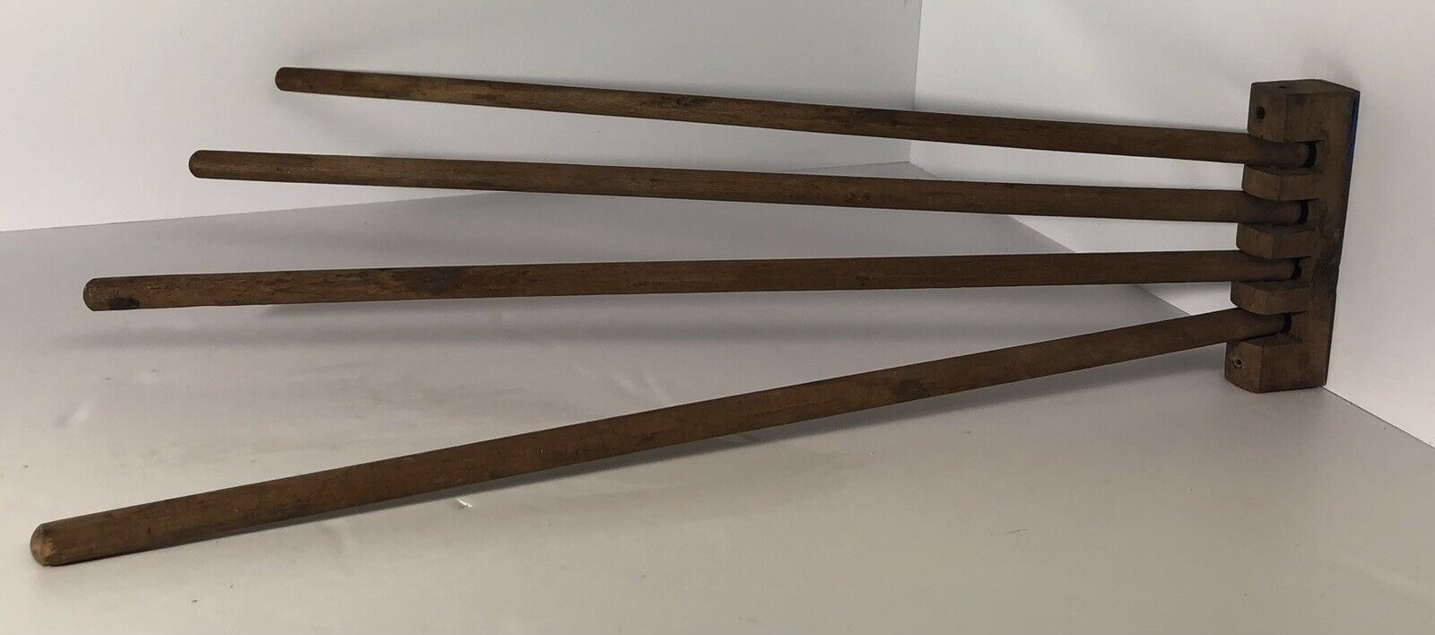 Antique Wooden Wall Mount Towel Clothes Drying Rack 4 Arm Farmhouse Primitive