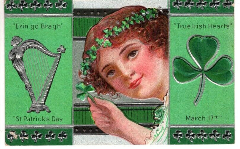 ANTIQUE ST. PATRICKS DAY Postcard 34TRUE IRISH HEARTS34 34MARCH 17TH34