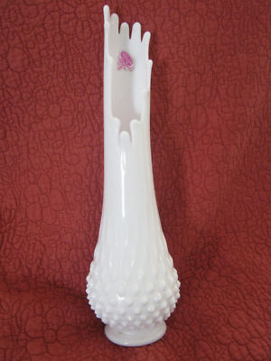Vtg Fenton Hobnail Milk Glass 13" Vase w/sticker