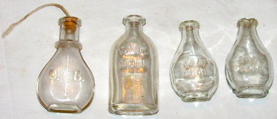 4 VTG GLASS DOLL TOY MILK NURSER BOTTLES PRE-1940'S