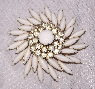Vintage Judy Lee Swirling Milk Glass Rhinestone Brooch