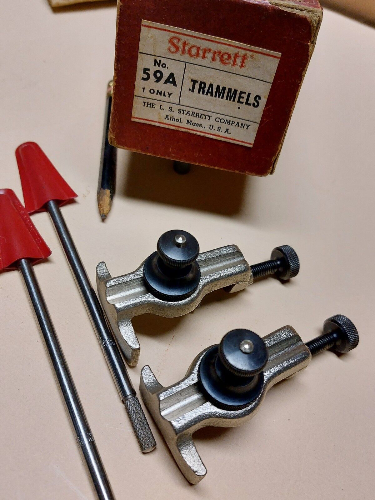 Vtg Starrett 59A Trammel points set 634 Machinist layout Carpenter Scribe Tool