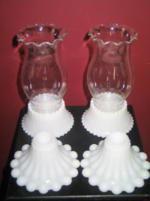 4 MILK GLASS LOT CANDLE HOLDERS GREAT CONDITION NR
