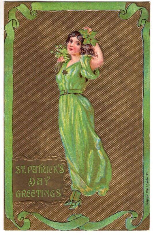 ANTIQUE EMBOSSED ST. PATRICKS DAY Postcard PRETTY YOUNG LADY