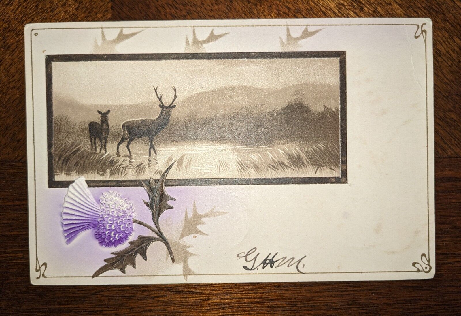 Antique 1906 Germany Deer Thistle Embossed Postcard Undivided Back