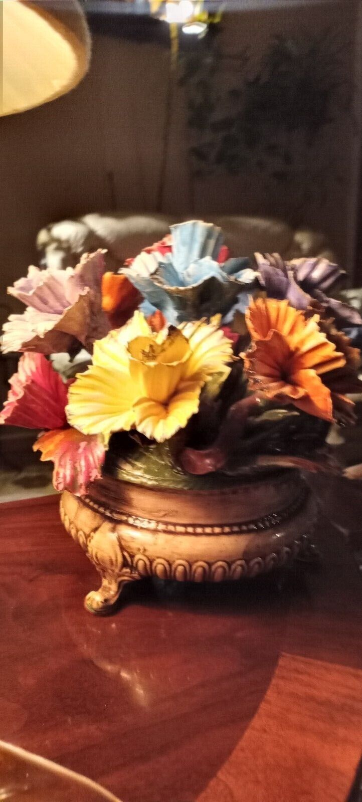 Large Porcelain Flower Center Piece Italy Capodimonte Antique No Breaks