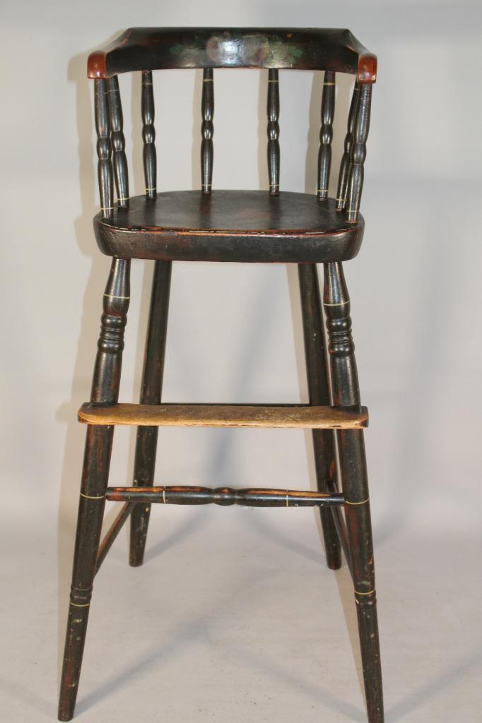 Title (ebay affiliate link): RARE EARLY 19TH C RI CHILDS WINDSOR HIGHCHAIR ORIGINAL BLACK RED GRAIN PAINT
