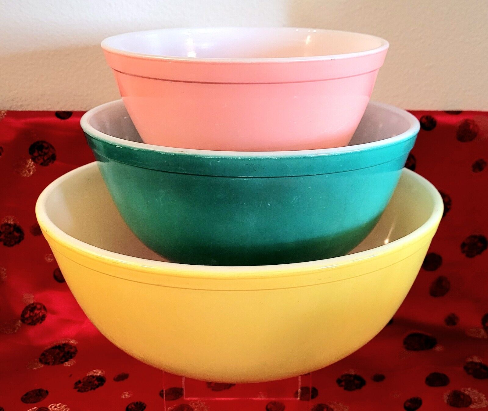 Vintage Pyrex Primary Color Mixing Bowls 402404 Set Of 3