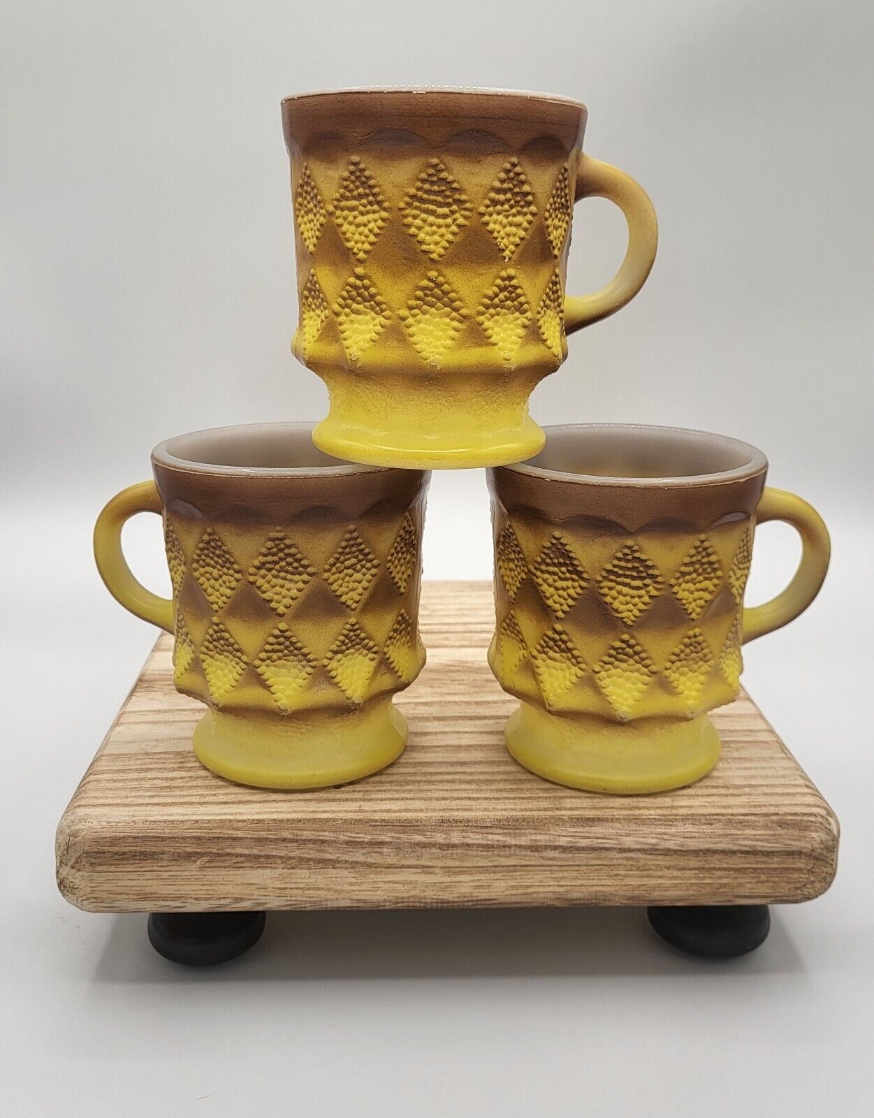 Vintage Anchor Hocking Fire King Kimberly Diamond Mug Coffee Cup Yellow/Brown