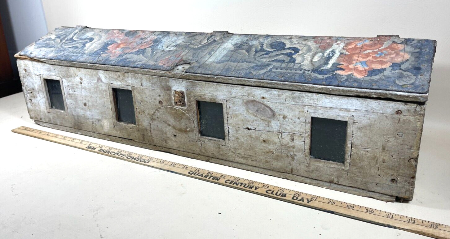 Title (ebay affiliate link): c.1900 FolkArt Agriculture Farm Duckling Wooden Carrier Chest w/Glass Windows