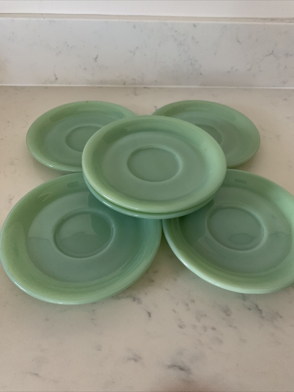 Vintage Mint FireKing Oven Ware Set of 6 Jadeite Green 53/434 Saucers
