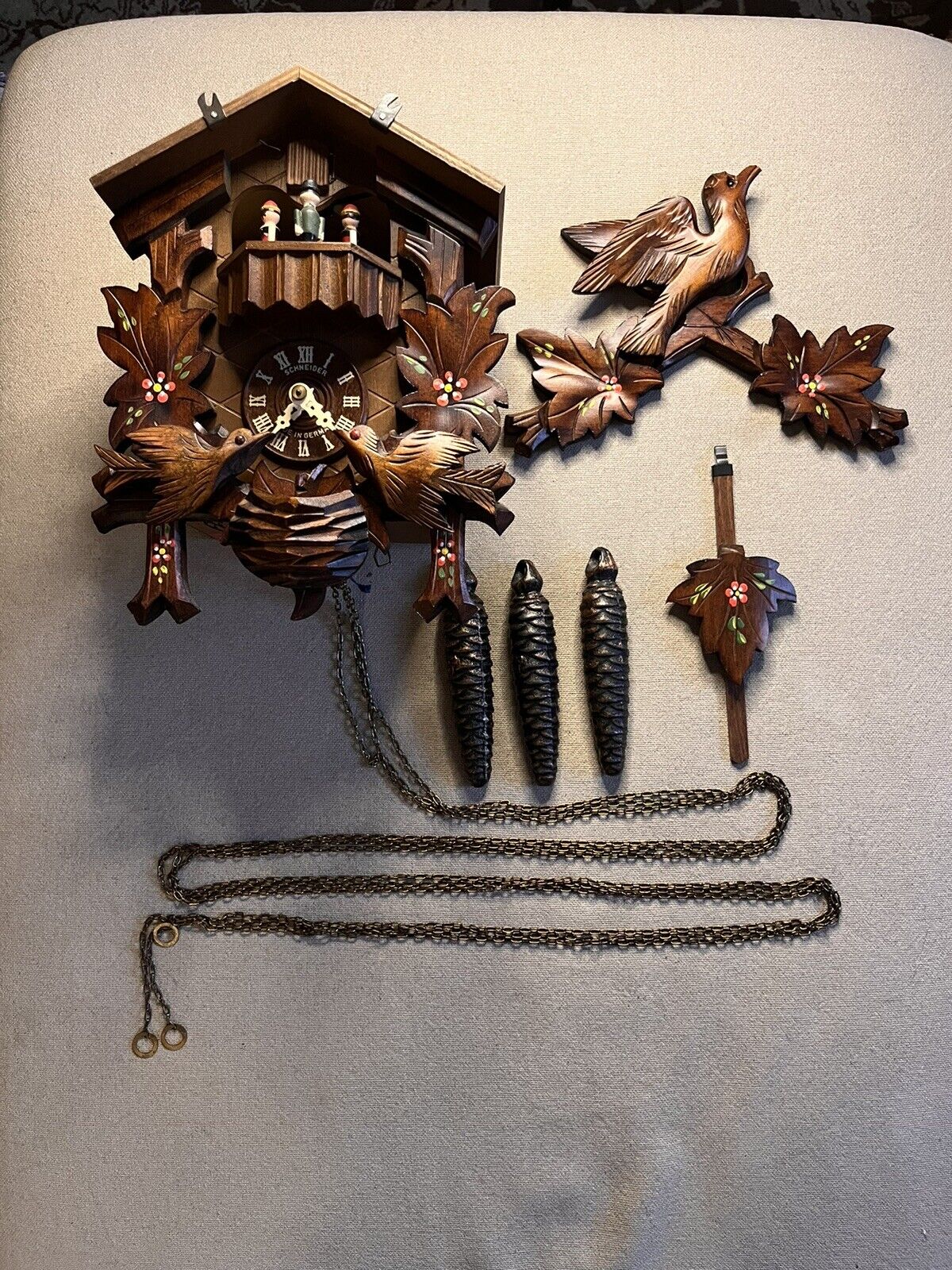 Estate Vintage 1930s Musical CUCKOOCLOCK Birds Black Forest Germany Schneider