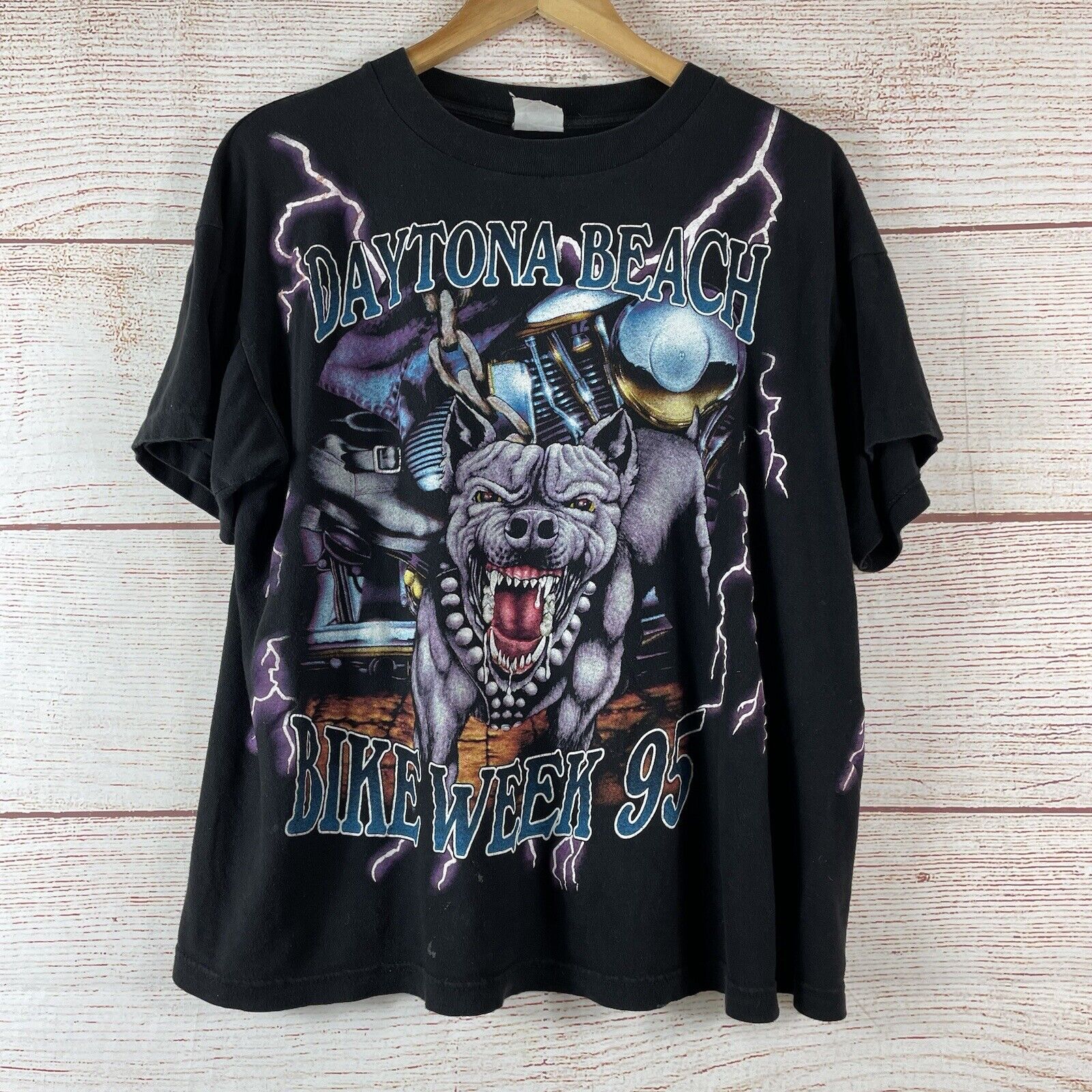 RARE VTG 95 Daytona American Thunder Pit Bull Oversized Boxy Tee Tshirt Size L