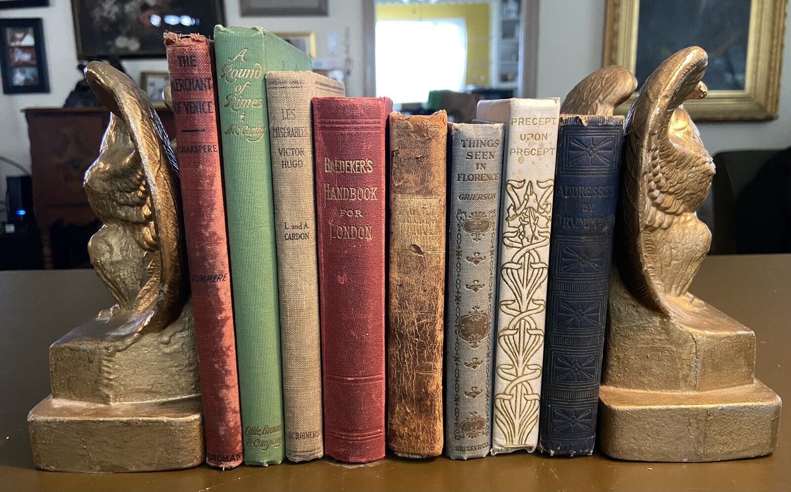 Antique Books 8 Lot 1820s1920s Classics Gilt Rare Home Decor Illustrated