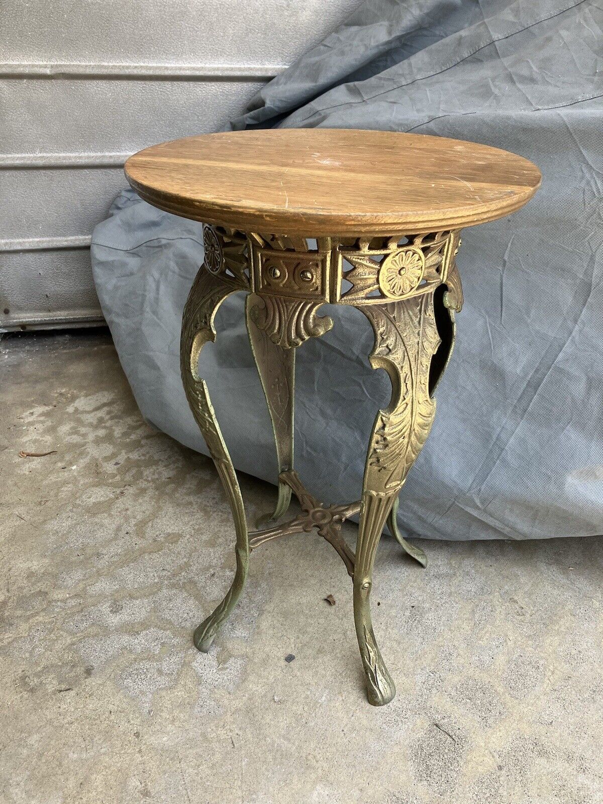 Title (ebay affiliate link): Vintage ornate Iron Plated plant stand Side Table Stool