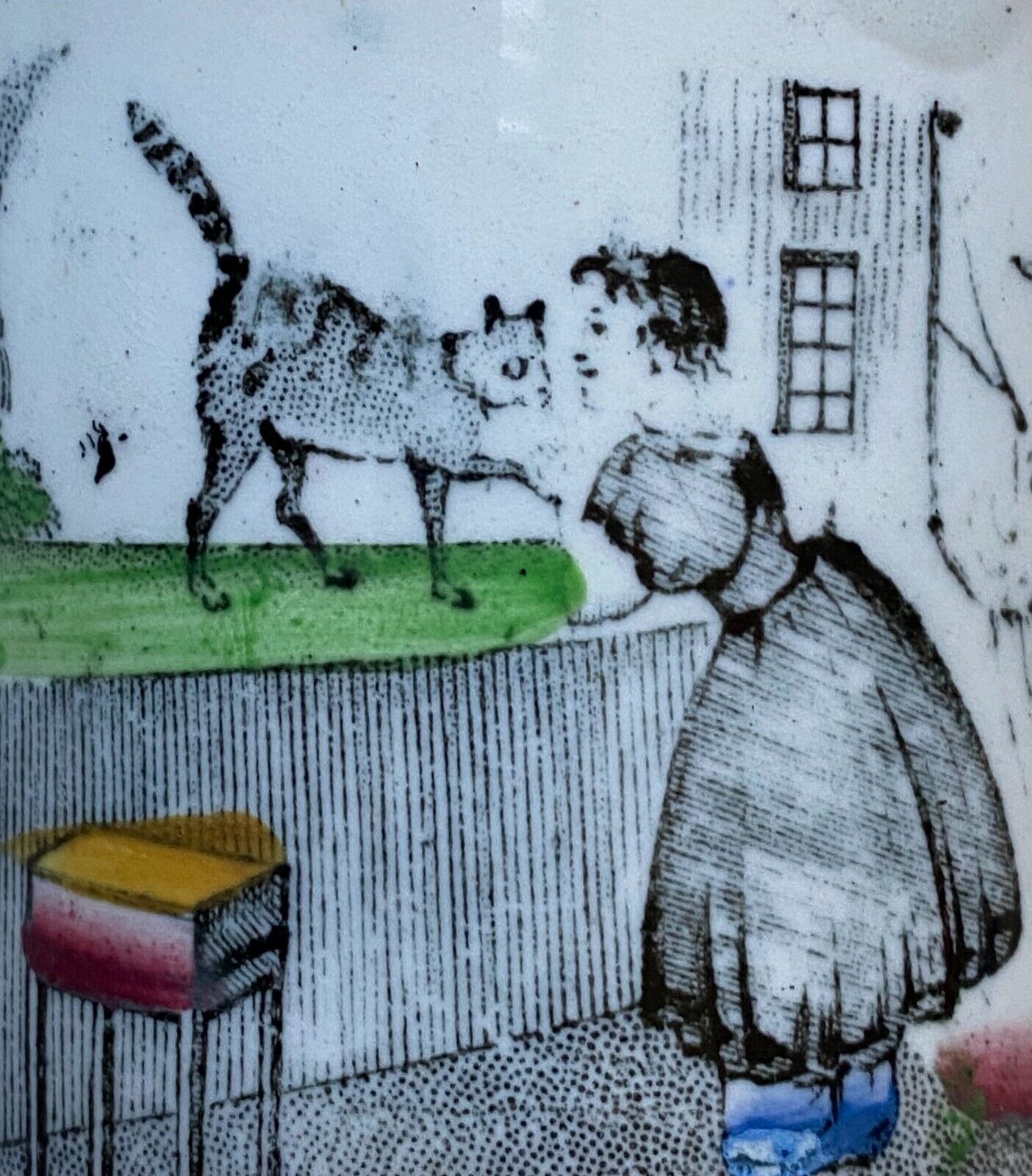 Title (ebay affiliate link): Antique STAFFORDSHIRE CHILDS MUG GIRL w CAT TRANSFER DECORATION c. 1840s