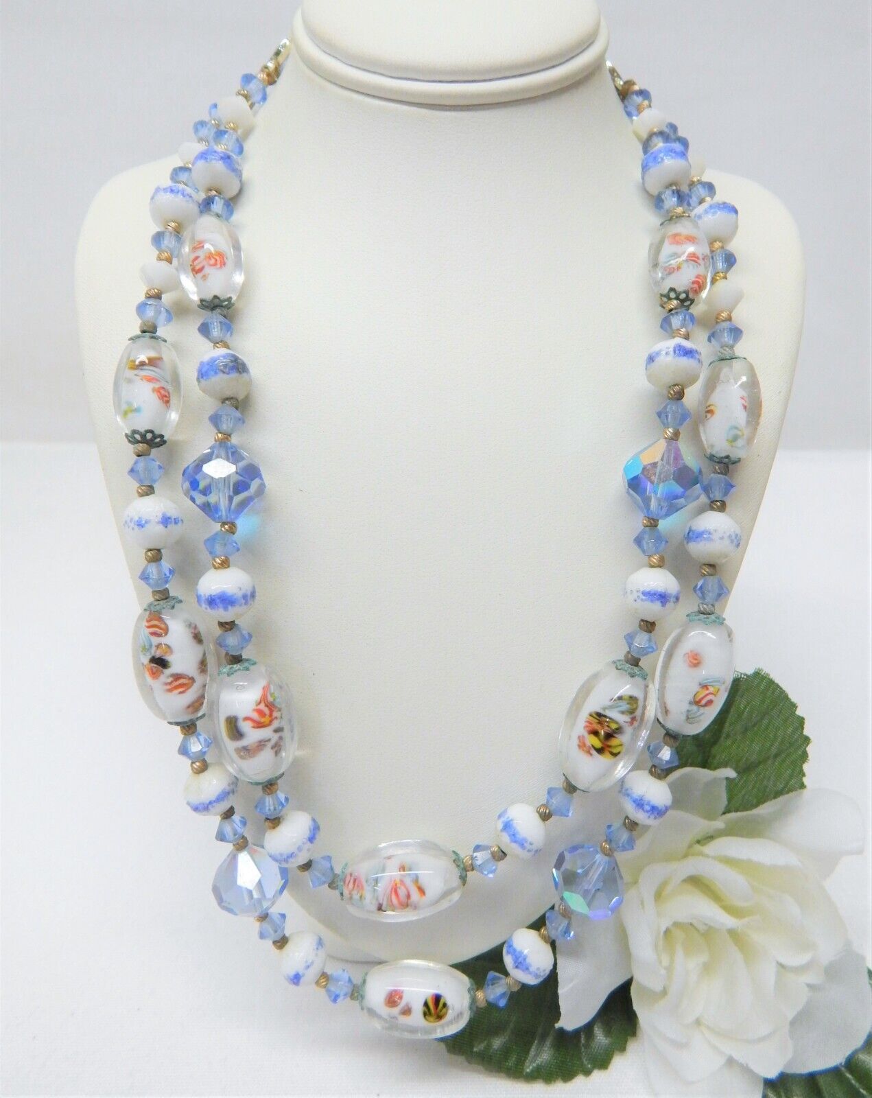 Title (ebay affiliate link): VINTAGE MULTI STRAND VENETIAN GLASS MILK GLASS CRYSTAL BEAD NECKLACE 16.534