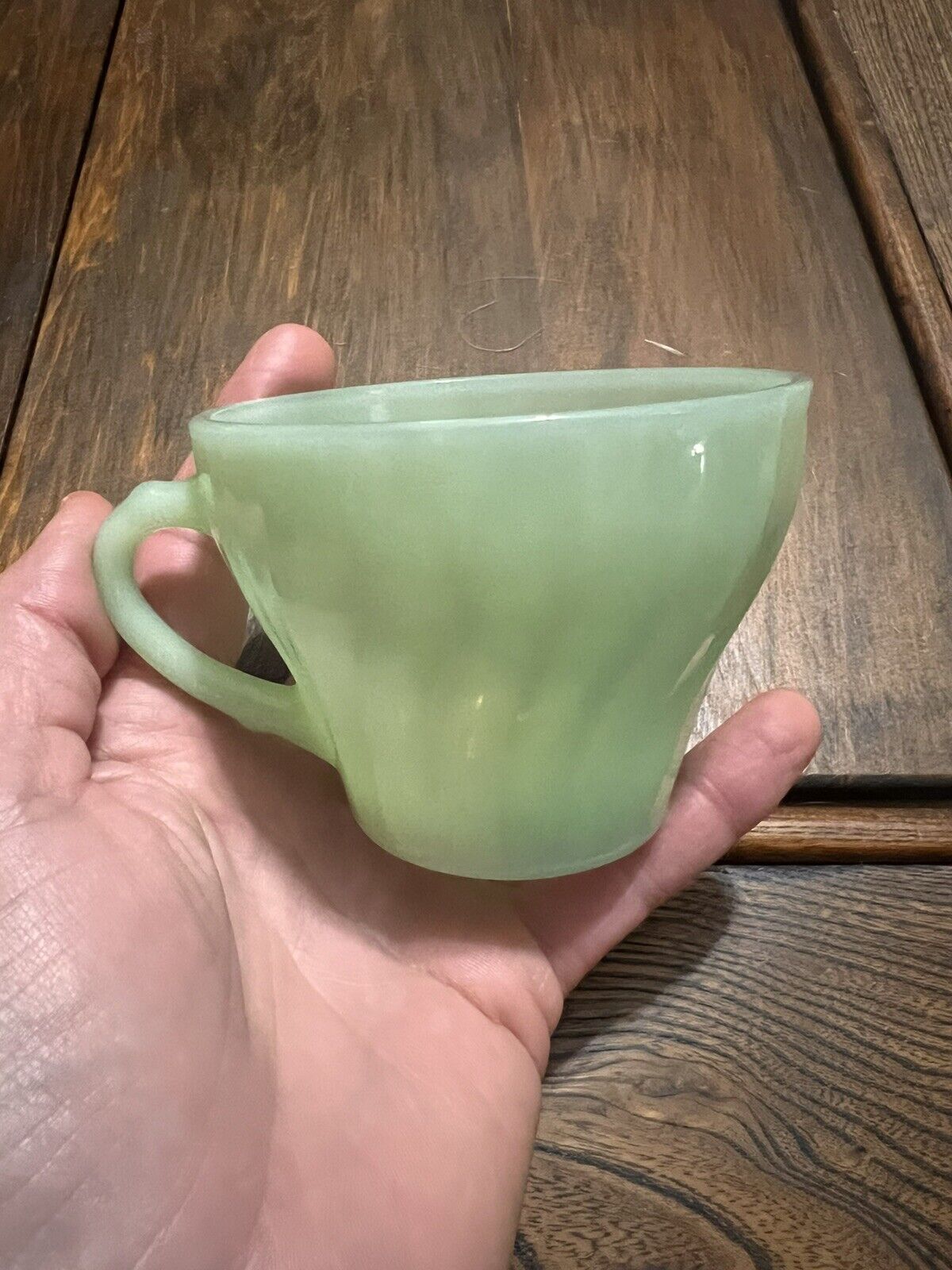 Title (ebay affiliate link): Nice Vintage FIRE KING ANCHOR HOCKING JADEITE SWIRL SHELL TEA CUP Lk NR