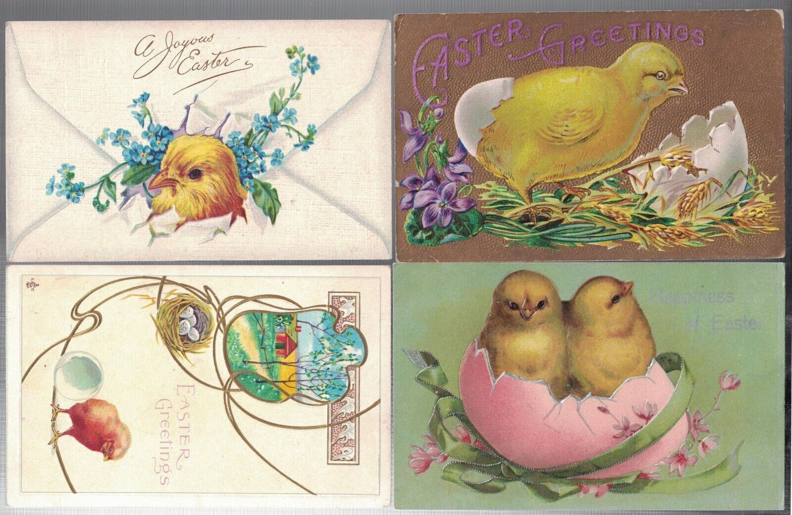 4 ANTIQUE 1910 EASTER GREETINGS HOLIDAY POSTCARD ALL WITH BABY CHICKS