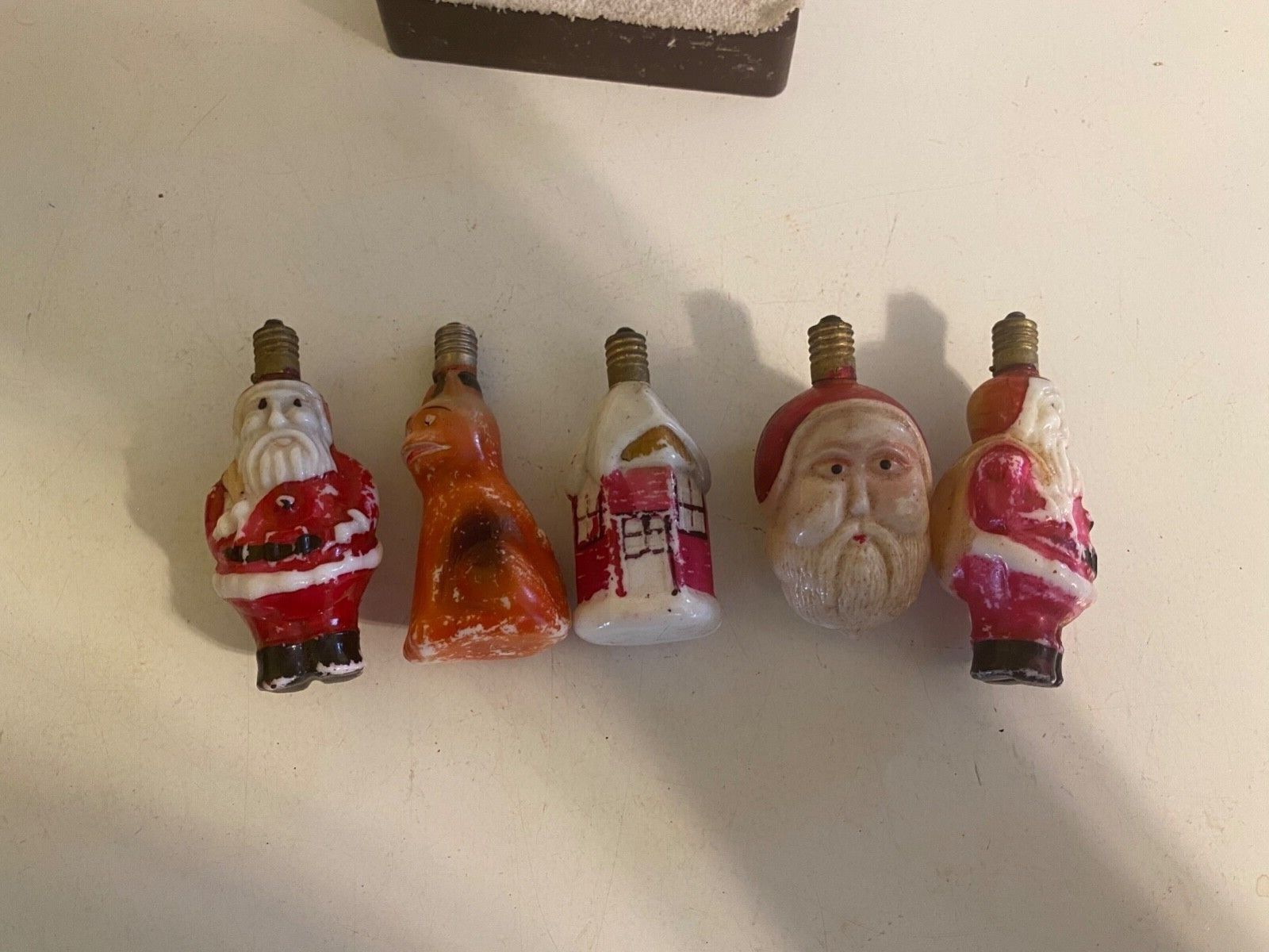 Title (ebay affiliate link): Vtg. Set 5 Christmas Figural Light Bulb MilkGlass 3.2534 Santa House DogUNTESTED