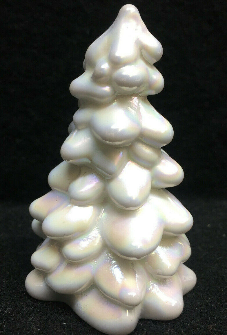 white milk carnival glass Christmas tree paperweight pine decoration iridescent