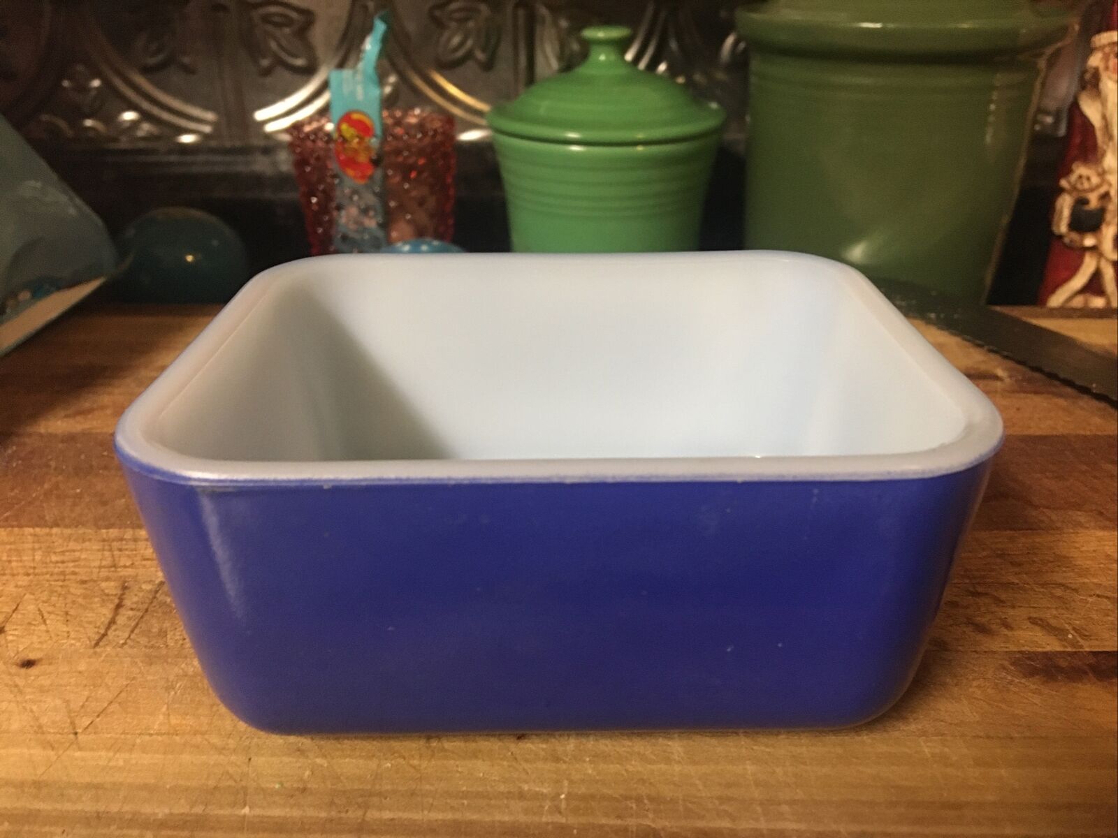 Title (ebay affiliate link): RARE McKee Glass Blue Fridge Dish Primary Set NO LID Vintage glass 5” x 4”