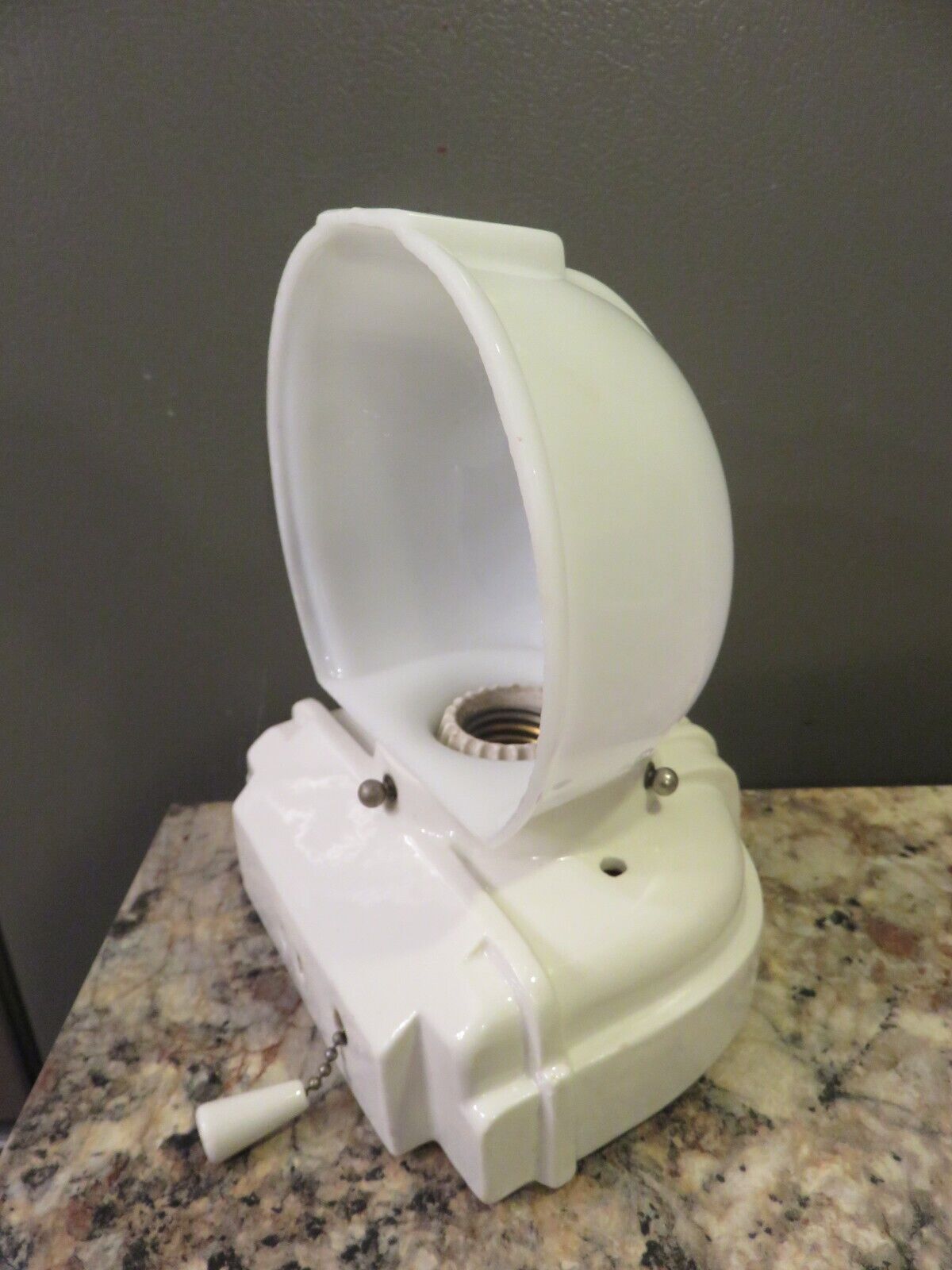 Title (ebay affiliate link): VINTAGE ART DECO PORCELAIN BATHROOM SCONCE WALL LIGHT FIXTURE W/MILK GLASS SHADE