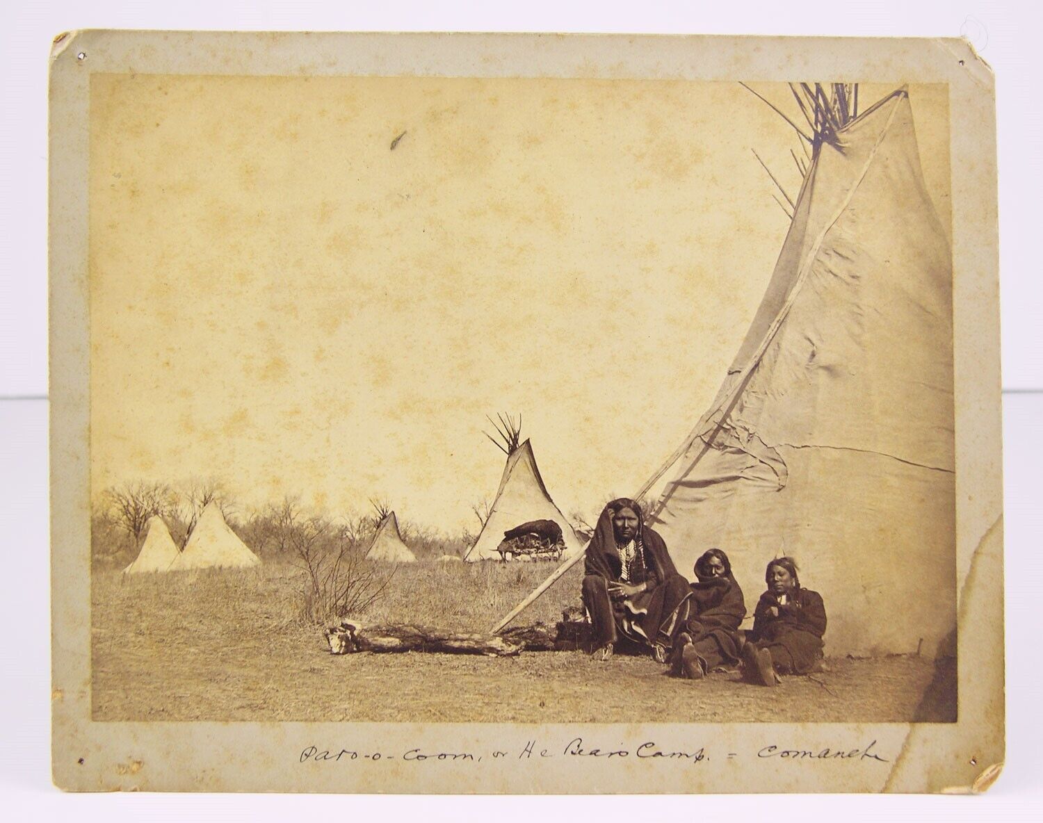 ca1872 NATIVE AMERICAN COMANCHE INDIAN CHIEF PARRAOCOOM CAMP CARD MOUNT PHOTO