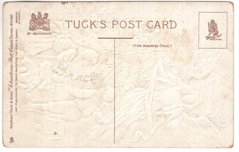 Title (ebay affiliate link): ANTIQUE CHRISTMAS Postcard RAPHAEL TUCK ANGEL CHILDREN WITH THEIR NEW TOYS