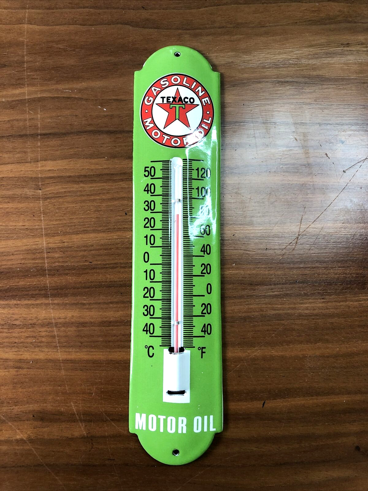 TEXACO GASOLINE MOTOR OIL PORCELAIN THERMOMETER OIL PUMP STATION GAS AD SIGN