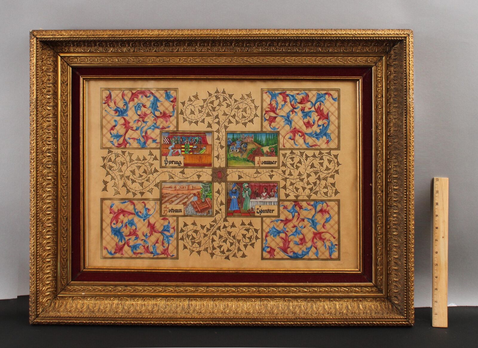 Title (ebay affiliate link): 19thC Antique German Gouache Paintings Seasons Medieval Knight Jousting Royalty