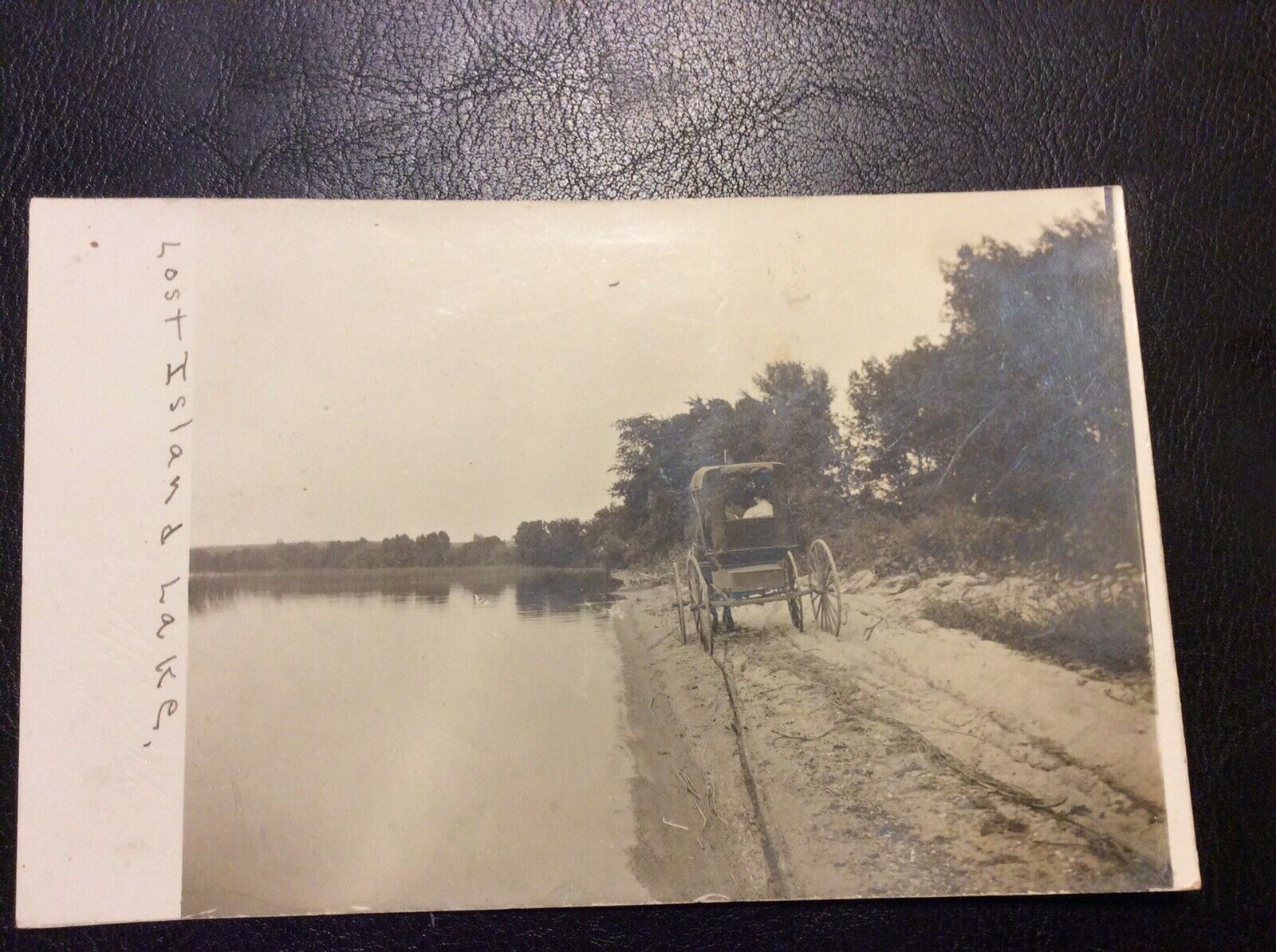 Ruthven Iowa Lost Island Lake Antique Real Photo Postcard RPPC Horse Buggy