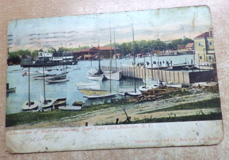 ANTIQUE POSTCARD VIEW OF RIVER CHARLOTTE YACHT CLUB ROCHESTER NEW YORK 1900S