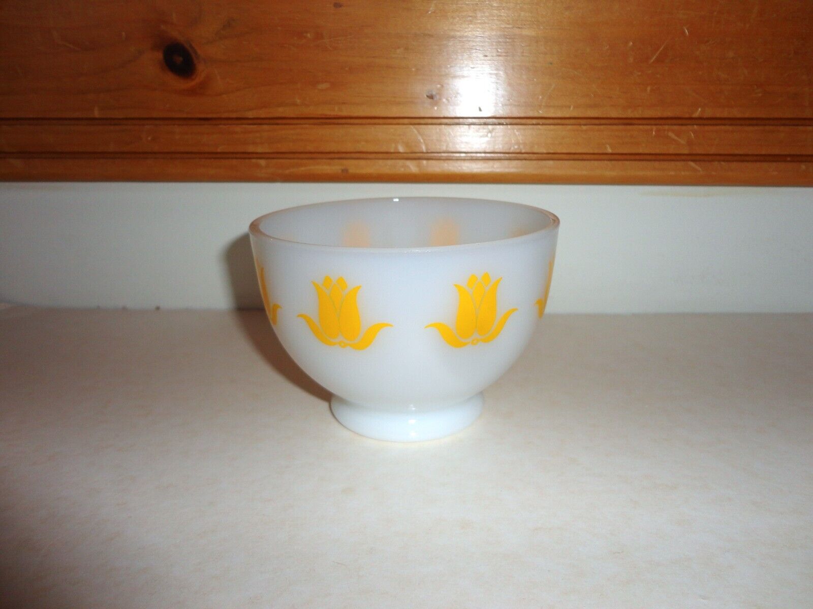 Vintage Fire King Milk Glass Yellow Tulip Design Sealtest Cottage Cheese Bowl