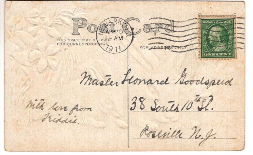 Title (ebay affiliate link): 1911 ANTIQUE EMBOSSED EASTER Postcard FOUR BUNNIES IN GRASS VIOLETS