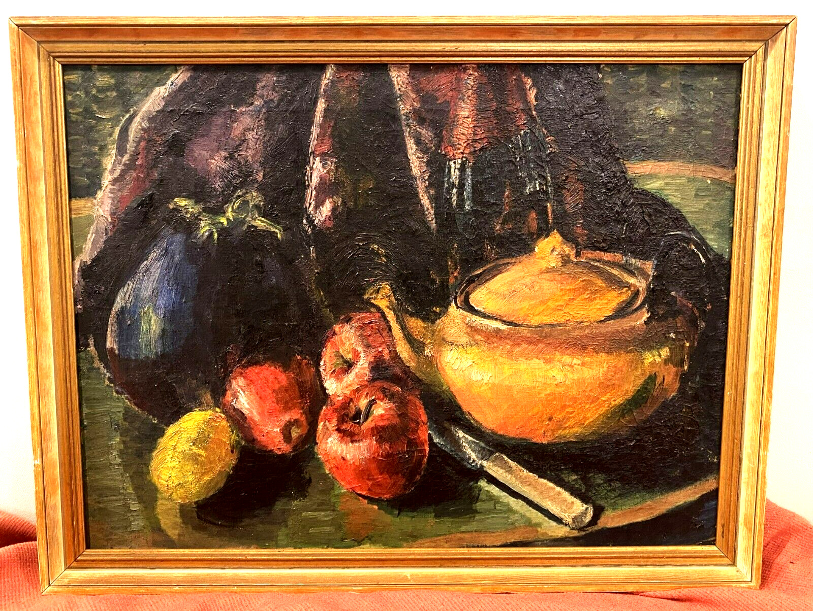 Title (ebay affiliate link): Antique WPA Era Painting Still Life Fruit Impasto artist signed 1940s Vintage